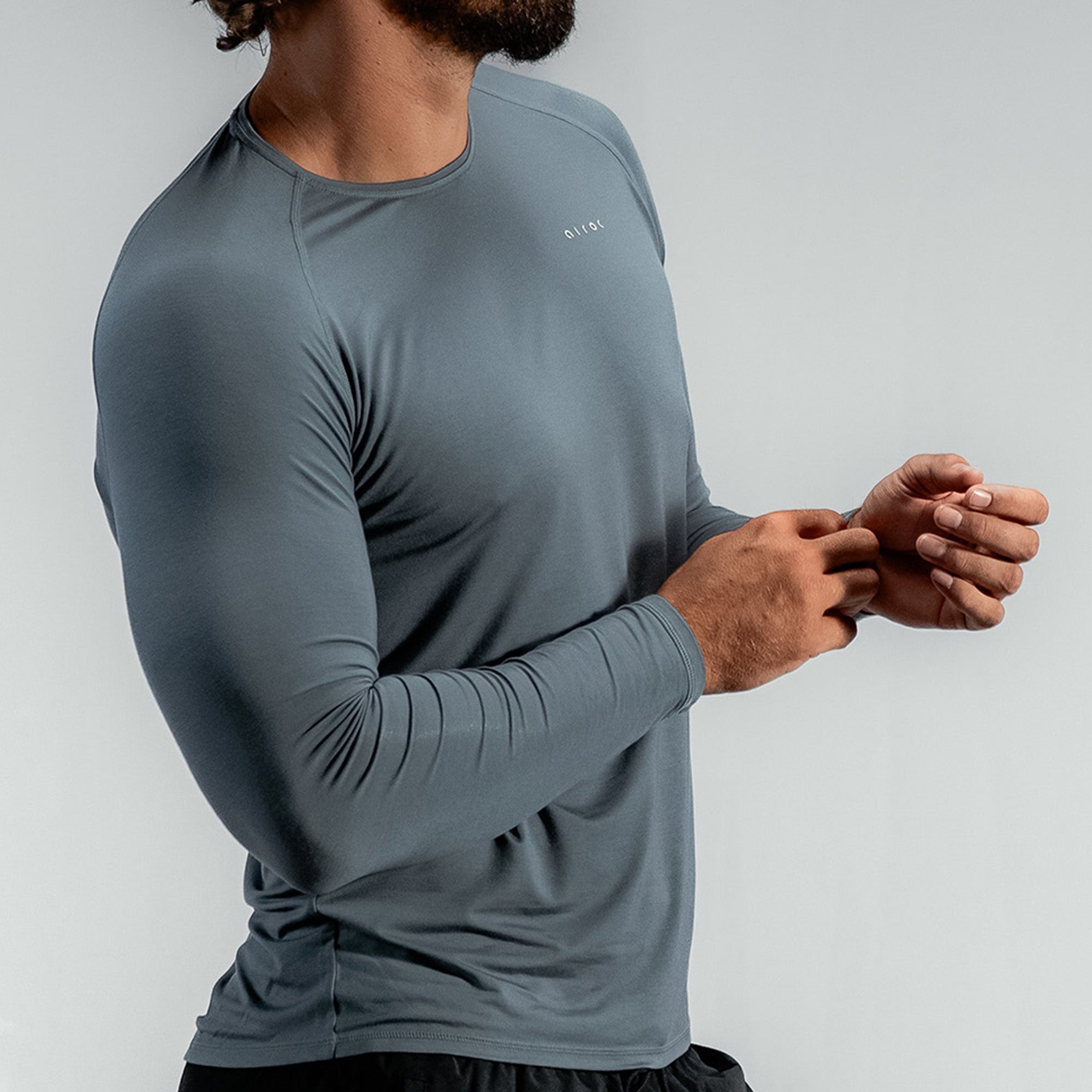 Impossibly soft from the first wear. The long-sleeve tee feels smooth, cool and weightless against the skin, with just enough substance to take the edge off colder sessions.